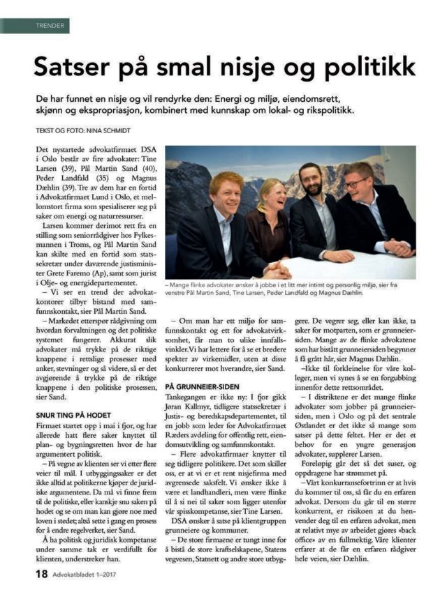 Med økende oppdragsmengde utvider vi laget, og ønsker Mathilde Aagaard velkommen som ny advokat i DSA! Aagaard tiltrådte 1. mars, og jobber særlig med tomtefeste, fast eiendom, plan- og bygningsrett og ekspropriasjon. Hun har omfattende erfaring som prosedyreadvokat innenfor et…